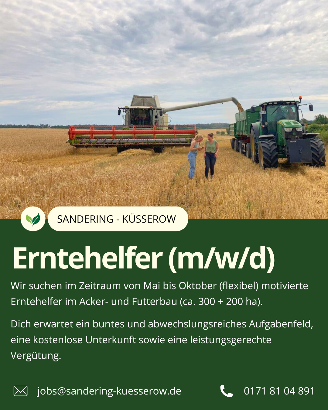 MV - Agrargenossenschaft Schwingetal e.G. Sassen, Erntehelfer 2026 für Ackerbaubetrieb (20.11.2025)
